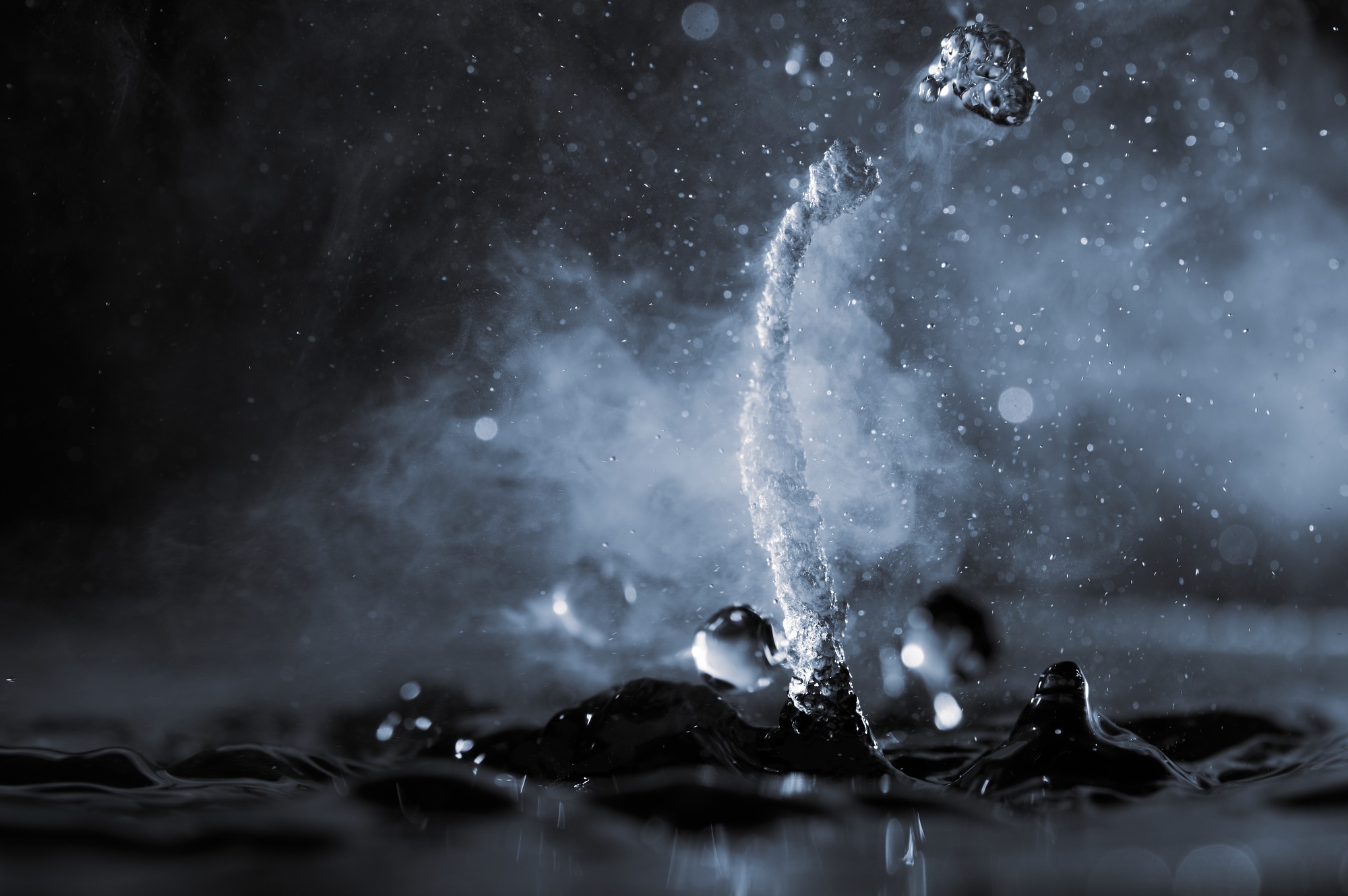 Original size is 2000 × 1330 pixelsBoiling water splash with steam on black background closeup