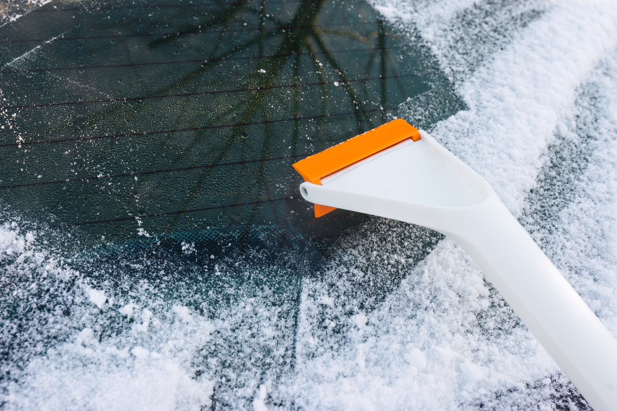 Sun shade made of blanket on car windshield driver refilling the blue non-freezing windshield washer liquid in the tank of the car, closeup Scraper for cleaning ice from car windows Original size is 2000 × 1333 pixels Scraper for cleaning ice from car windows